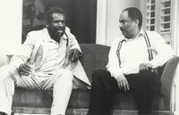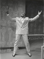 Prints from possibly two different photographers showing various actors. Among others are Vincent Wong, Shango Baku, Ram John Holder. Shots were taken during rehearsal and possibly performance. Some pictures are signed Amrando Atkinson (rehearsal shots) and the rest are not signed (all shots with borders).
