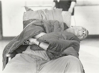 Negatives showing actors reading in front of audience in a community centre. Visible are actors Alastair Bain and Anthony Lennon casting in the play, which could be Tewodros or Remembrance' Please refer to prints in BTF/P/Y/4019.